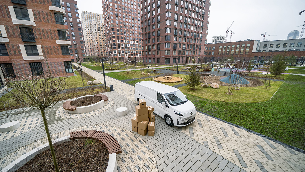 С одной стороны — он компактный. Его габариты идеально подходят для маневров в городских условиях: он легко заезжает на закрытые паркинги и справляется с логистическими задачами. Это особенно важно для доставки на «последней миле».