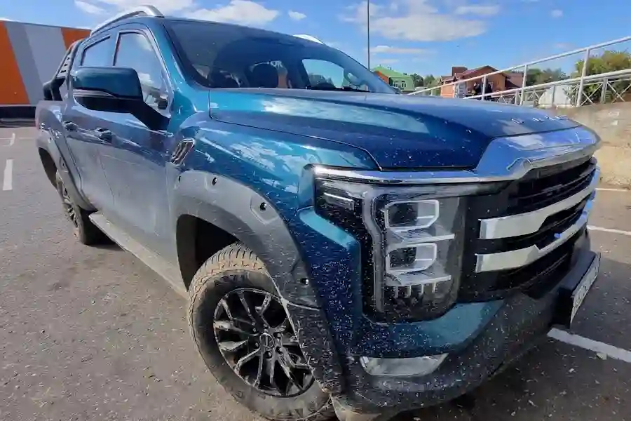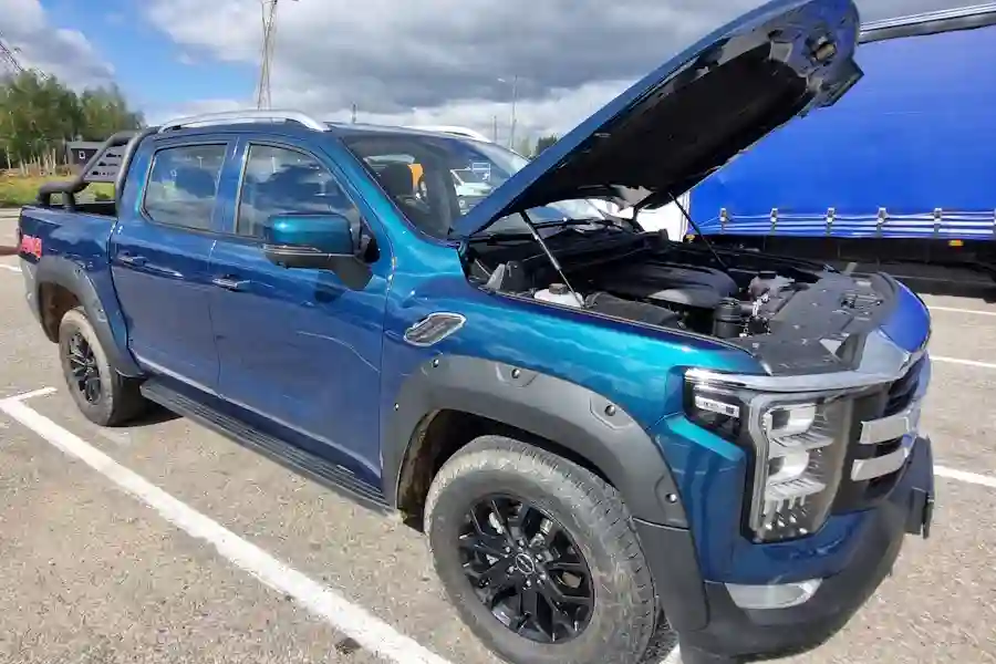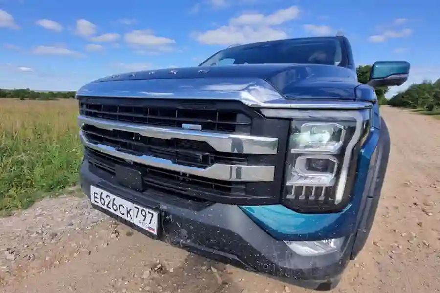 Внешне автомобиль очень похож на своих американских собратьев. Китайские дизайнеры явно вдохновлялись американским Ford F-150, особенно это заметно в передней части автомобиля. Однако, в техническом плане машины совсем разные. Для этого достаточно заглянуть под капот. Там конечно же нет никакого бензинового пожирателя топлива в конфигурации V8, в моторном отсеке стоит скромный турбодизель объемом 2 литра, развивающий 159 л.с. при 410 Нм крутящего момента. Но дизель работает в паре с 48 вольтовой гибридной системой, которая прибавляет еще 60 Нм.