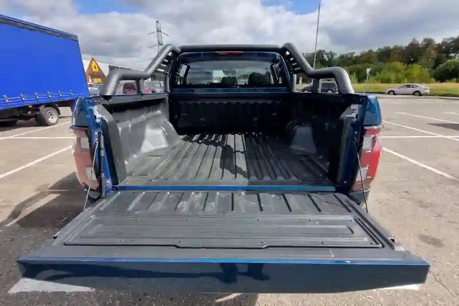 Салон FOTON TUNLAND V7 заслуживает отдельного внимания. Очень большая кабина порадует простором даже задних пассажиров. По сути, пикап может подойти для длительных семейных путешествий. Качественные материалы отделки, очень удобные кресла водителя и переднего пассажира на электрорегулировках. Подлокотник есть как у задних пассажиров, так и для водителя. Масса розеток USB, беспроводная зарядка для смартфона.