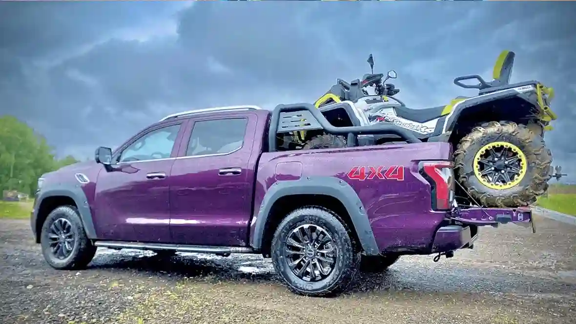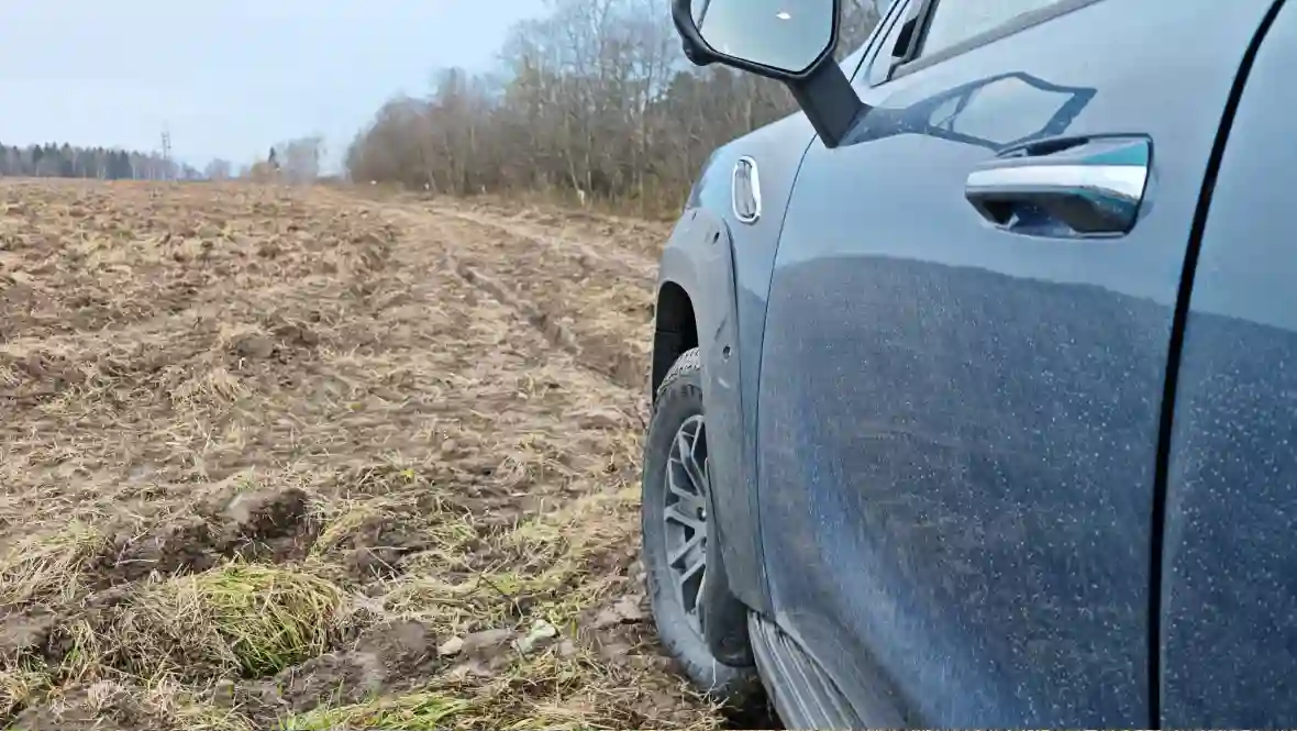 Клиренс 210 мм (по задним амортизаторам), углы въезда/съезда 28°/26°, глубина брода 700 мм, жёстко подключаемый 4WD BorgWarner, понижайка 2,48:1 и 100 % блокировка заднего дифференциала Eaton. Добавьте к этому 18-дюймовые AT-шины и специальные внедорожные режимы, которые реально меняют характер машины, — и получаете пикап, который уверенно ползёт по грязи, песку и камням, вытаскивает себя лебёдкой (если поставите) и спокойно тянет прицеп до 750 кг без тормозной системы по грунтовке. Он не заменит подготовленный Defender или Hilux с лифтом, но для охоты, рыбалки, стройки и обычного «заехать куда все боятся» — более чем достаточно. Главное — загрузить кузов хотя бы 200–300 кг, иначе жёсткие рессоры будут подпрыгивать на пустой машине.