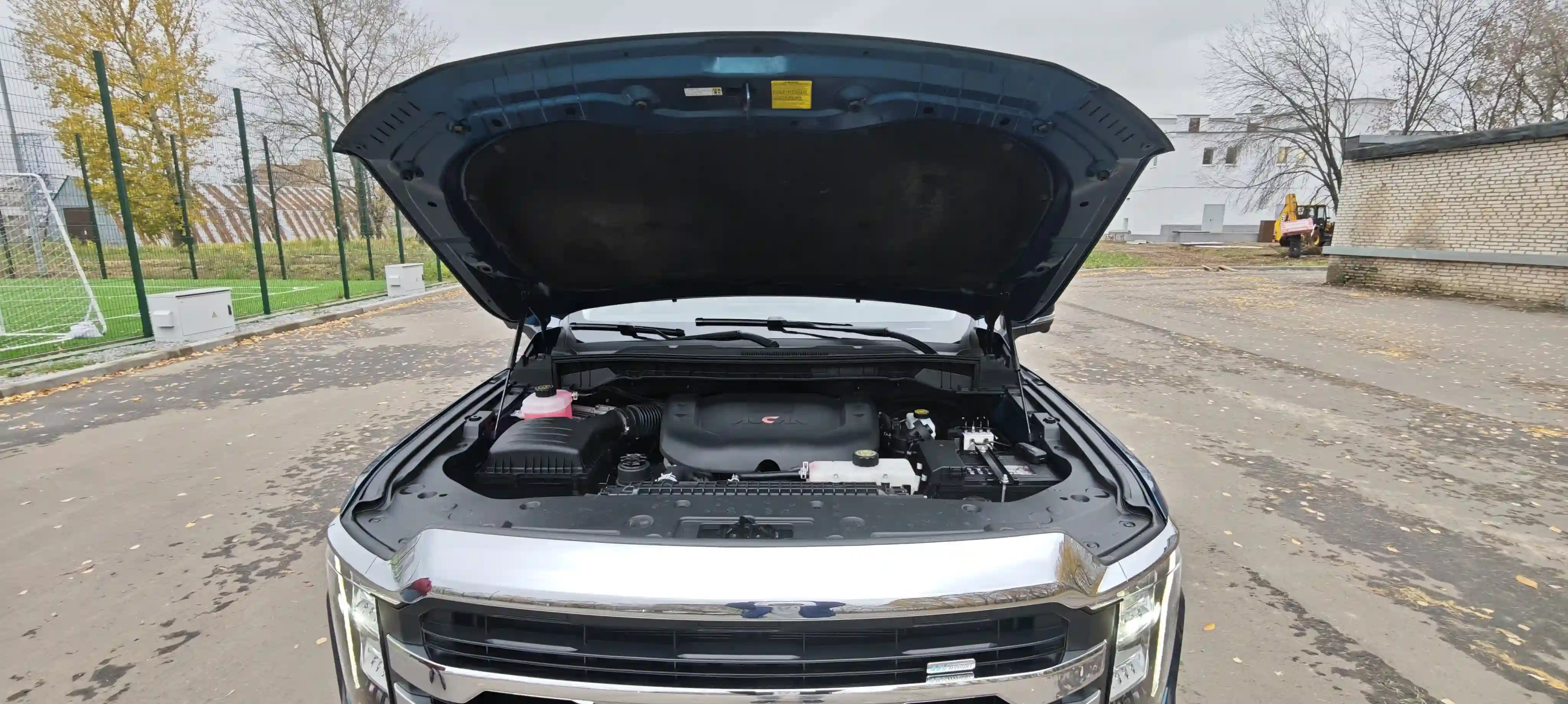 Под капотом сразу бросается в глаза наклейка Aucan — это бренд двигателей и силовых агрегатов, созданный FOTON в партнёрстве с Cummins (совместное предприятие Beijing FOTON Cummins Engine Co., Ltd., или BFCEC, с 2006 года).