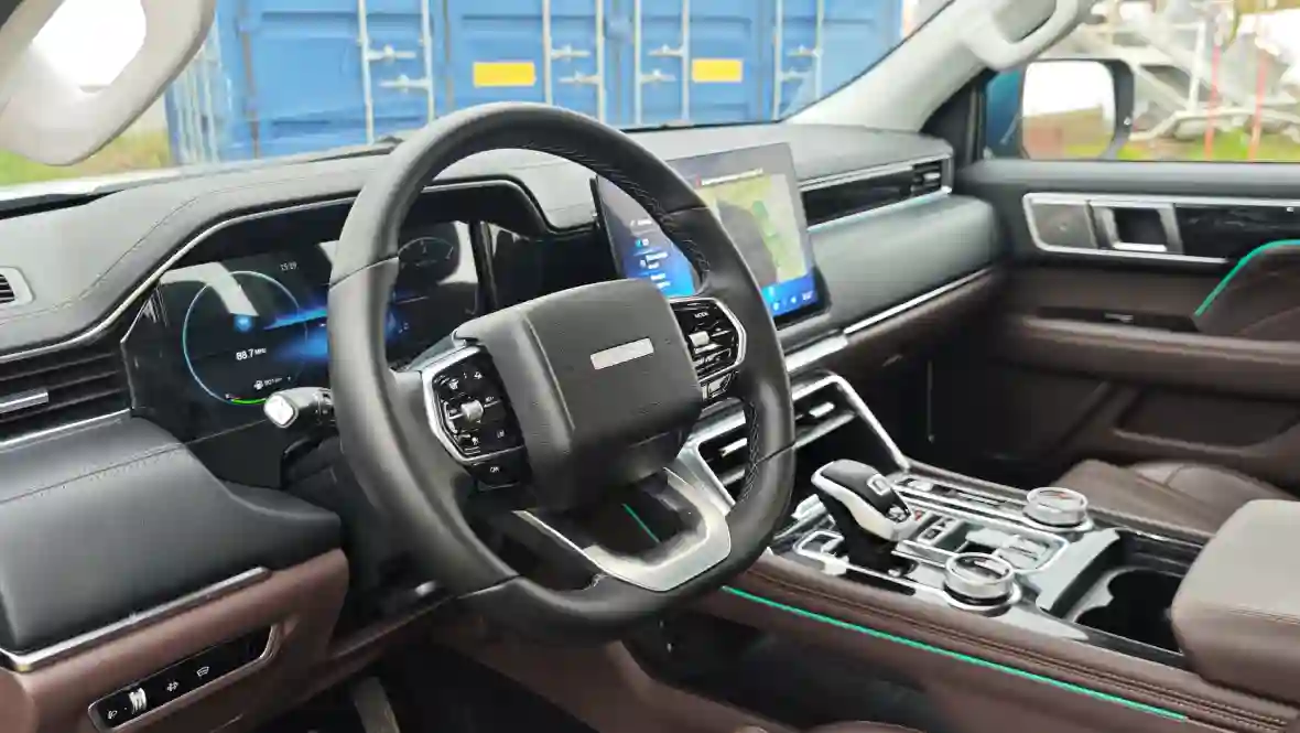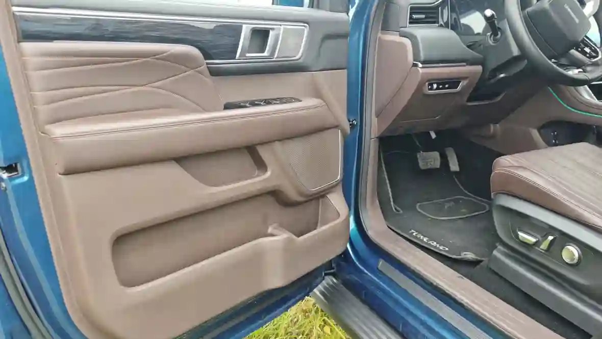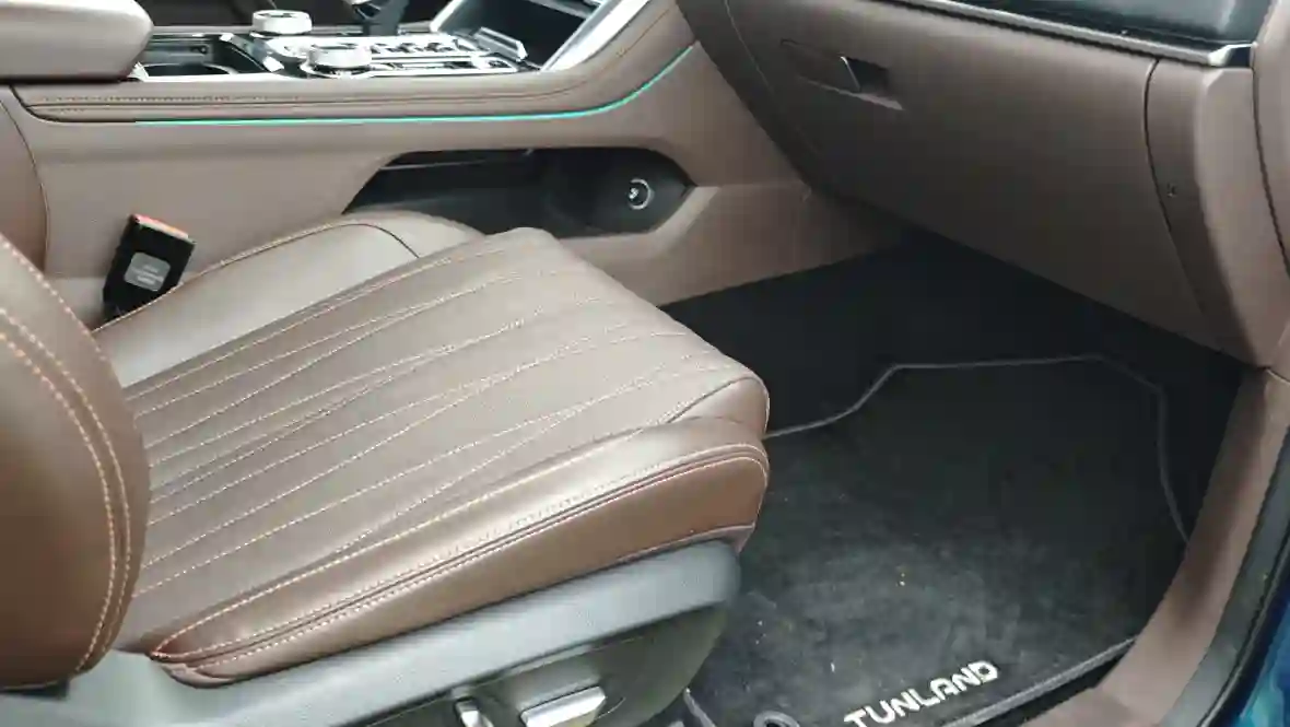 Poer, с его длиной около 5410 мм, короче и ниже (клиренс 212 мм), что делает его более манёвренным в городе, но менее доминирующим на внедорожье; его дизайн — это «умная крепость» с минималистичными LED-стрипами и пластиковыми протекторами, в то время как TUNLAND V7 добавляет хрома и чёрных акцентов для большего лоска, хотя и уступает в утончённости боковым зеркалам с повторителями (у Poer они часто с камерами).