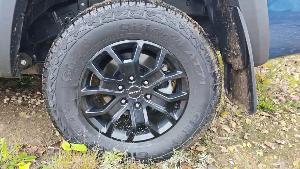 Колёса на 18-дюймовых чёрных литых дисках с шинами Giti 265/70 R18 (AT-вариант для off-road) завершают образ внедорожника.
