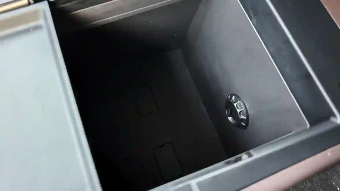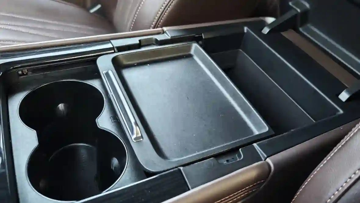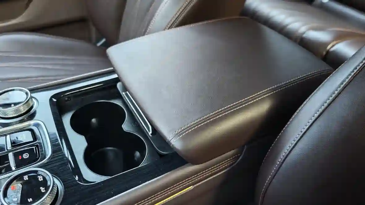 Подлокотник огромный, с охлаждаемым боксом.