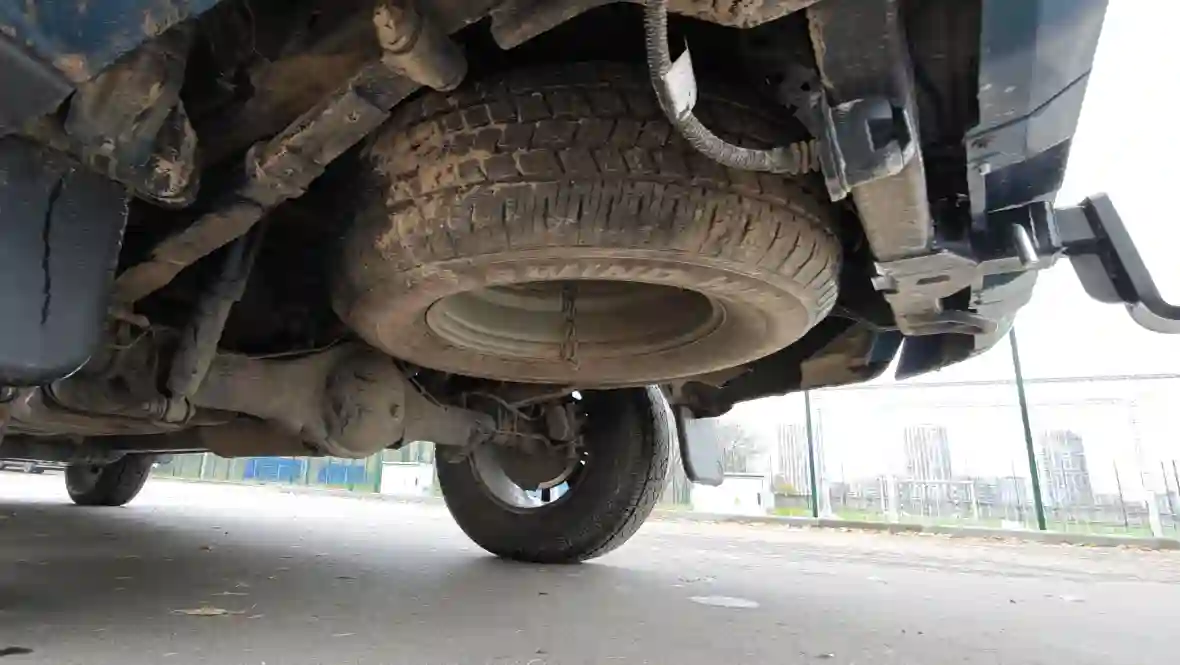 Запасное колесо, традиционно для внедорожников, крепится к днищу, в задней части кузова. Не самое чистое место автомобиля, зато не занимает лишнего пространства.