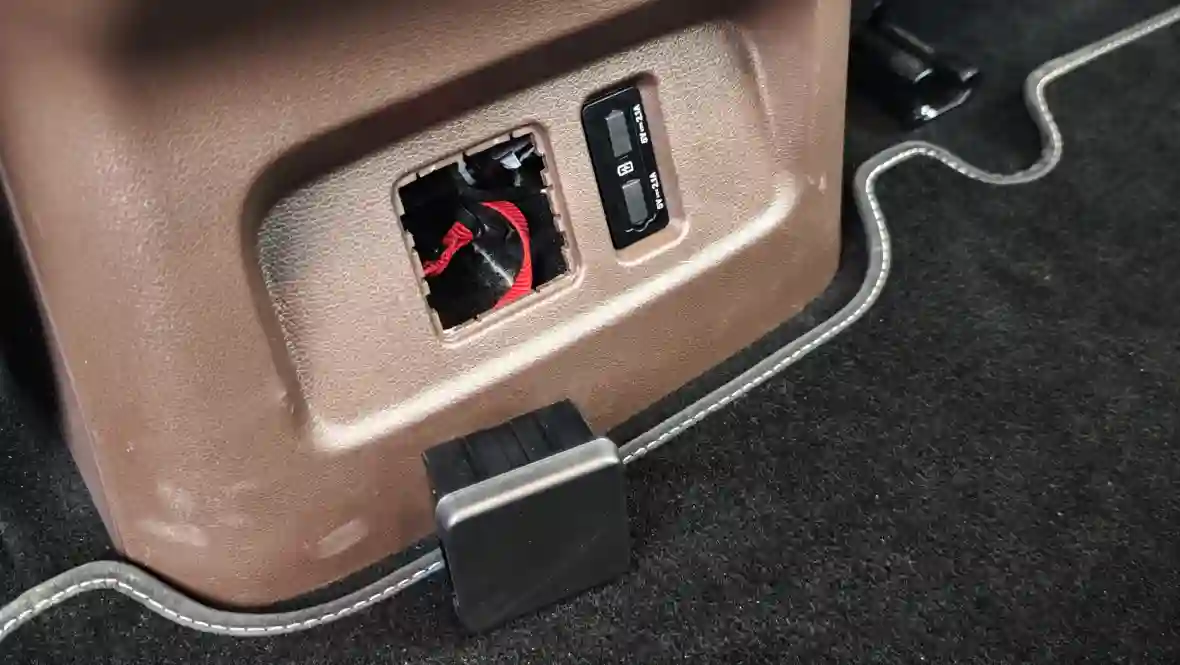 А в более богатых комплектациях — ещё и розетка 220 В (в нашем случае просто дешёвая заглушка, которая к тому же не слишком надёжно держится в пазах).
