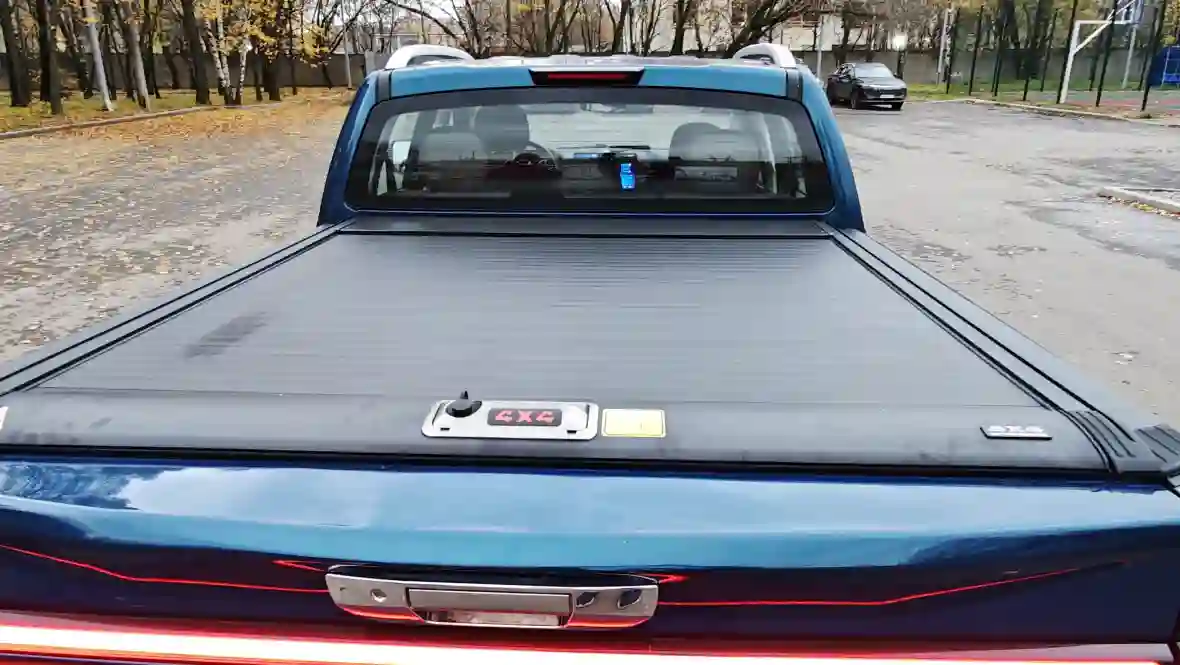 На рассматриваемый V7 установлена механическая роллета. Тут каждый сам оценивает необходимость подобной модернизации, кому-то, возможно, практичнее будет кунг или вовсе тент. Но на наш взгляд, самое практичное – многосекционная крышка. Она надёжно защищает пространство кузова от осадков, легко устанавливается и демонтируется и надёжно крепится.