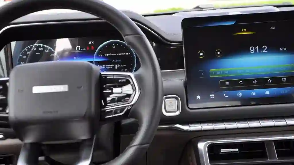 На передней панели есть два дисплея: один приборной панели, другой, диагональю 14,6 дюймов, заведует мультимедиа. В машине соблюден приемлемый баланс между физическими кнопками и виртуальными приборами. Покопавшись в них, можно посмотреть даже температуру трансмиссионного масла! У пикапа хорошая шумоизоляция, по старинке, на слух, проверить работу коробки не получится. Зато отправляясь в путь, можно быть уверенным — если что, на помощь придут многочисленные электронные системы безопасности, а также шесть эйрбегов.